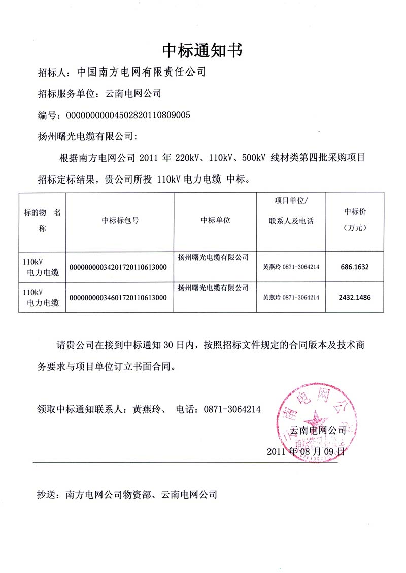 扬州曙光电缆股份有限公司是1985年创办的专业生产电线电缆的企业,位于风景秀丽的历史文化名城扬州市北郊。系国家级重点高新技术企业,全国守合同重信用企业,2017年中国线缆行业100强企业,AAA级资信企业,江苏省优秀民营企业,江苏省和谐劳动关系模范企业,江苏省劳动保障诚信示范企业,江苏省文明单位,江苏省环境保护先进单位。生产的“强菱”系列电缆是江苏省名牌产品,“强菱”商标是中国驰名商标。董事长郑连元同志先后被授予江苏省优秀企业家、江苏省劳动模范等荣誉称号。 公司占地面积20多万平方米,拥有净资产8.2亿元,有员工近700人。1996年在全行业率先通过GB/T19001《质量管理体系》认证,并先后通过产品安全认证,GB/T24001《环境管理体系》、GB/T28001《职业健康安全管理体系》认证,GB/T19022《测量管理体系》认证。主要产品有:500KV、220KV、110KV及以下交联电力电缆、塑力缆、架空绝缘电缆、屏蔽控制和计算机电缆、核电站用1E级点击查看
