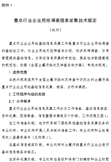 ![环境保护部办公厅文件环办土壤[2017]67号关于印发重点行业企业用地调查系列技术文件的通知各省、自治区、直辖市环境保护厅(局),新疆生产建设兵团环境保护局:为落实《全国土壤污染状况详查总体方案》要求,规范各地重点行业企业用地土壤污染状况调查的信息采集、初步采样调查、风险筛查与风险分级工作,我部组织编制了《重点行业企业用地调查信息采集技术规定(试行)》《在产企业地块风险筛查与风险分级技术规定(试行)》《关闭搬迁企业地块风险筛查与风险分级技术规定(试行)》《重点行业企业用地调查疑似污染地块布点技术规定(试行](http://www.orangeelectric.cn/uploads/attached/image/2017-08/21/1503296413_4760.png)
